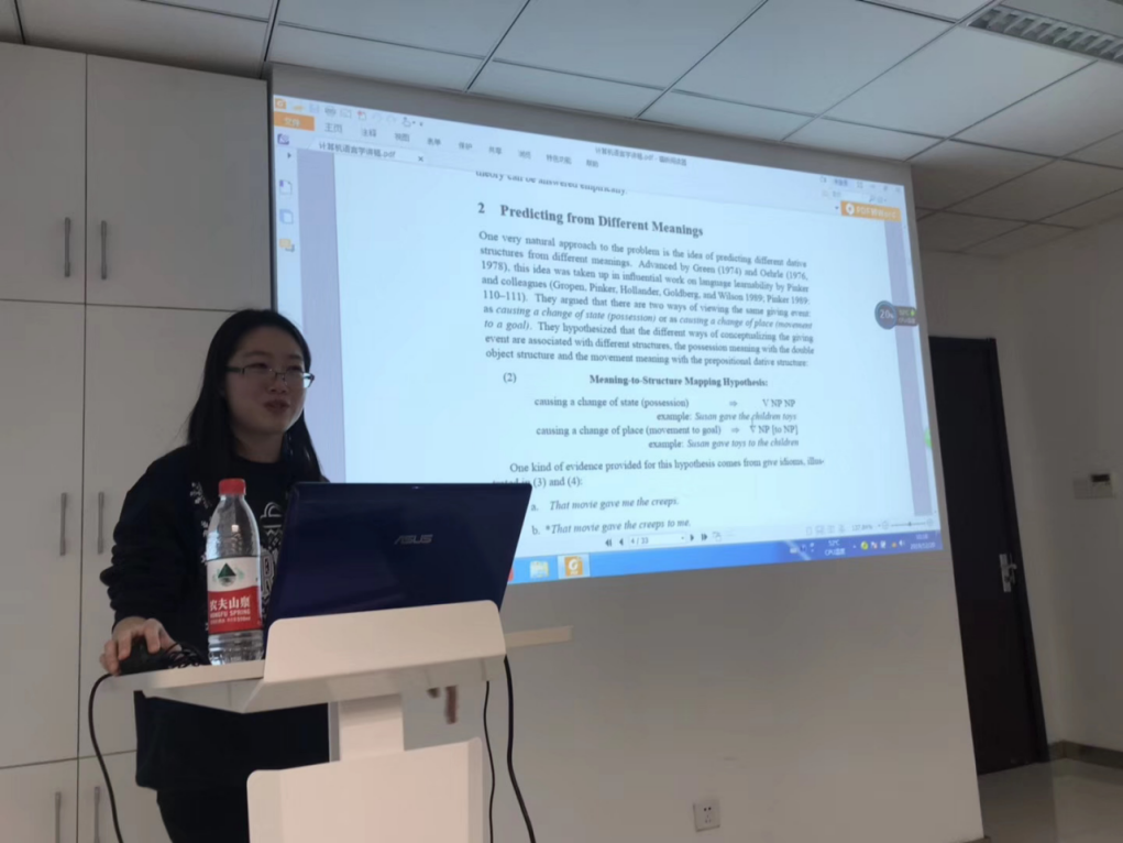 2019学年语言学系第一学期科研报告会于2019年12月20日上午8:30在综合楼329顺利举办。举办本次会议的目的是增进语言学系师生之间对于科研工作的了解,加强交流与合作,推动语言学学科的发展。系主任司富珍教授、青年教师王文颖、孙晓晨博士,以及语言学系研究生参加了本次活动。 本次报告会共有四位研究生进行了科研汇报:博士研究生郭霞作了题为《“不是不X”的句法语义分析》的报告;硕士研究生宁静作了题为《从论元结构看轻动词的引进——以双宾句为例》的报告;美国乔治城大学语言学系理论语言学方向博士研究生罗卓思分别作了题为Syntactic analysis of ‘Functional Application’: A case study on Teochew ‘A+CL’strucure 及 When computational science meets theoretical linguistics: A case study on dative alternation in English 两场报告;硕士研究生付佳作了题为The Brain Basis of Language Processing: Three-phase model的报告。五场报告选题范围广泛,涵盖句法本体、神经语言学及计算语言学等多个方面。报告会过程中大家踊跃发言,各位师生就感兴趣的科研问题展开了热烈的讨论。 最后,语言学系系主任司富珍教授做了总结发言。司富珍教授首先感谢了各位师生对本次科研工作报告会的热情参与,谈到学术研究一定要多交流,多把握机会,不懂一定要多问;紧接着,司教授谈到科研汇报过程中的学术规范问题;最后,学院非常重视科研队伍的建设,充分尊重学生的研究兴趣,充分关心学生的学术发展。语言学系第一学期科研报告会的开展,对语言学系科研成果实现数量和质量的均衡发展起到了积极的促进作用。
