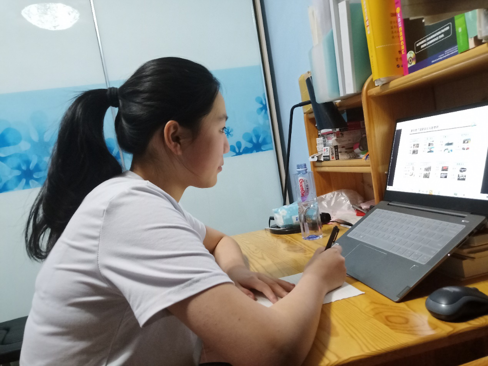 袁嘉琳同学在学校宿舍认真学习公开课内容