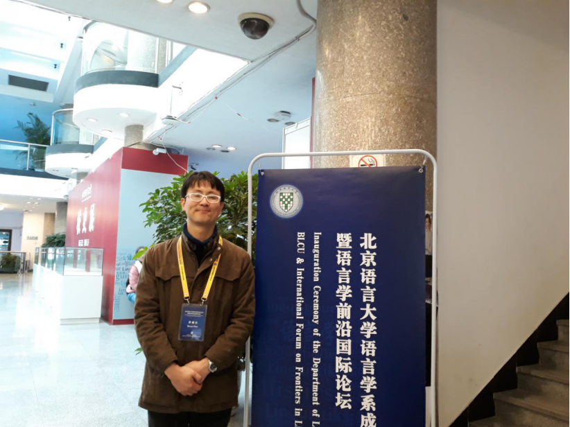 语言学系朴赫在博士 【个人基本信息】 姓名 : Park Hyuk-jae / 朴赫在 身份 :博士生 (孔子学院 新汉学计划 中外合作联合培养项目:现已从北语语言学系顺利完成学习,目前在韩国外国语大学继续攻读博士学位) 导师 : 司富珍 教授(中方), 金琮镐 教授(外方) 国籍 : 韩国 本科 : 韩国外国语大学 中文系 (毕业) 研究生 : 韩国外国语大学 汉语中文系 硕博连读 (结业) 【研究领域】 汉语句法学, 比较句法学,句法-语义界面 【已经取得的成果】 Park, Hyuk-Jae(2019a), “The Historical Change of Word Order and the Reanalysis Explanation in Chinese ‘V-lai’+LocP: with the Case of Verb Luo/Zhi”, The Journal of Chinese Studies vol. 87:153-183. Park, Hyuk-Jae(2019b), “ ‘V-Lai+NP <Theme>’ construction in Chinese: the diachronical word order distribution and its event HEAD”, Journal of Chinese Linguistics in Korea vol. 82, 161-189. Park, Hyuk-jae(2019c), “On the syntactic structures of VlaiL and VLlai in Mandarin”, The Third International Workshop on Syntactic Cartography(IWSC2019). Park, Hyukjae & Mingu Na(2019), “ Rhetoric of Persuasion in The Analects (Lunyu) of Confucius”, Korean Journal of Rhetoric, 69-89. 【兴趣爱好】 读书,看电影,养乌龟/金鱼 毕业感言 在北语语言学系学习期间,我听了老师们的精彩讲授,与认真研究的同学们经常交流。我非常感谢,也感谢司富珍老师的指导和支持、同门们学习及生活上的帮助。你们有机会去韩国的话,就跟我联系吧!期待继续交流! 北语语言学系与世界语言学界交汇,承担着吸收人才,培养人才,输送人才的重任。而如今朴赫在同学顺利完成在北语语言学系的学习任务,将返回韩国继续攻读、深造。希望朴赫在同学毕业顺利,在之后的研究过程中为语言学界做出更多贡献!同时也期待着北语语言学系与其他国际高校的交流合作,吸引更多人才的到来! |