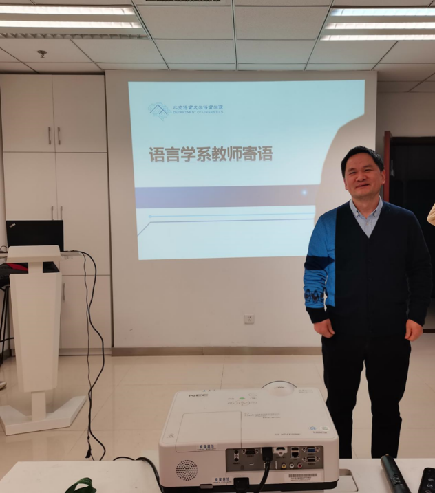 孟雪老师介绍学生假期安排及疫情防控要求 强调完有关事宜,接下来是语言学系教师们对学生的寄语环节。语言学系副主任熊仲儒教授首先致辞,简明扼要地对同学们提出希望和建议:一要有理想,二要快乐。