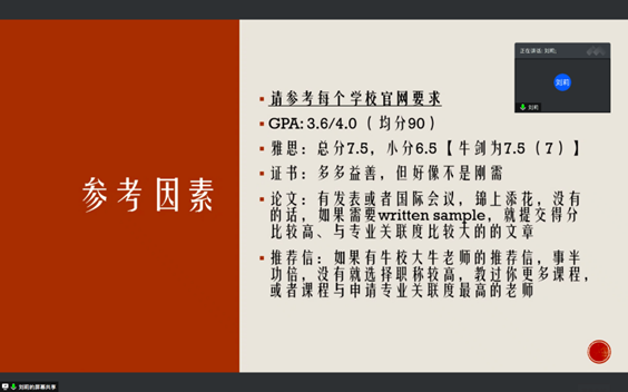 公派出国留学申请时间线 最后是由硕士就读于伦敦大学学院,现攻读英国华威大学博士学位的刘莉学姐,以自身及身边朋友的经历为例,重点介绍了应该高校的申请流程,所需留学费用估算,研究生院录取参考因素,以及是否应当考虑留学等问题。