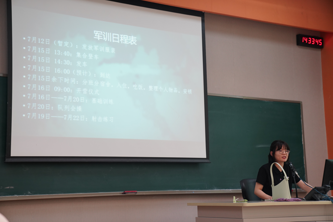 辅导员孟雪老师向本科生介绍军训安排 大会第三个环节是由语言学系各位老师对军训进行动员,充分体现出语言学系对军训工作的重视和支持。语言学系党总支书记、语言学系主任司富珍老师希望各位同学能够增强保家卫国的意识,端正自身认识,严守纪律。此外,司老师强调军训是磨练个人意志的好方法,希望各位可以珍惜这次参与军训的机会,认真参与其中,体现出语言学梦之队严守纪律、坚忍不拔的精神风貌。