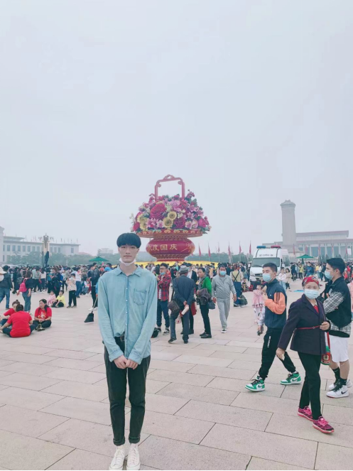 20级硕士生 许子涵 今年是中国共产党成立100周年。中国在中国共产党的带领下、在全国人民坚持不懈的奋斗下,取得了今天一系列辉煌的成就。这些年我们遇到过各种各样的挑战,包括国际形势的变化以及新冠肺炎的侵袭。二十三岁的我深刻体会到能够成为一名中国人是多么的自豪,能够生活在中华大地是多么的幸运。 今年国庆与以往最不同的体验便是亲眼见证了五星红旗在天安门广场升起的过程。凌晨12点骑着自行车从学校出发,在路上遇到了一群志同道合的群众,大家的目的地都是一致的,即天安门。十几万的群众聚集在天安门广场等待升国旗,当国旗升起的那一刻,国歌奏起的那一刻,所有人目光聚集在那五星红旗上,唱着国歌,内心激昂澎湃。大家聚集在一起也说明了一点:中国的防疫取得的效果值得称赞! 最后,我想说:一生无悔入中华!祝福我们伟大的祖国母亲生日快乐,永远繁荣昌盛!