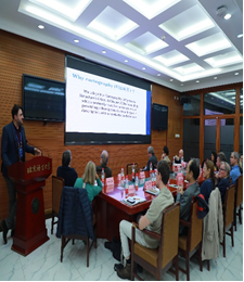 Giuseppe Samo老师积极参加国际学术研讨会,大力宣传北语,为北语的学术传播做出了自己独特的贡献。2019年10月,参加由北京语言大学语言学系主办,瑞士日内瓦大学语言学系、句法制图国际研究协会(澳门)、意大利驻华使馆文化协办的首届“改写分界线”语言学系建设国际研讨会暨“第三届句法制图国际研讨会”,并在大会上报告题为“Quantitative Cartographic Syntax”的学术论文。此外他还参与多项重大课题研究,例如参与北京语言大学重大项目:18ZDJ06 句法制图视角下的语言习得和认知研究(Studies on Language Acquisition and Cognition from a Cartographic Perspective of “the Fundamental Research Funds for the Central Universities)。