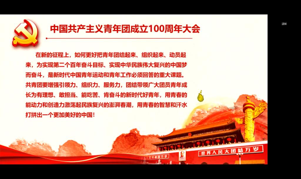 围绕着党日活动主题,学生党支部的成员共同学习了习近平总书记在中国人民大学考察时的讲话、《新时代的中国青年》白皮书、中国共产主义青年团成立100周年大会相关的内容、以及观看了全面从严治党和党风廉政建设宣传教育片。