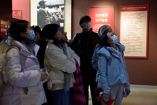 在延庆平北抗日战争纪念园,师生们首先观看了“抗战时期中国共产党党风廉政建设展”。展览分为分为“积基树本 赓续前行”“延安作风 光辉典范”“常抓不懈 警钟长鸣”3个部分,全面展示了中国共产党在抗战时期开展党风廉政建设的艰辛和取得的光辉成就,既有很强的史料价值,也有非常重大的教育意义。