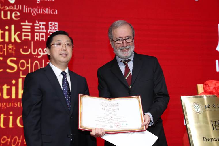 Award the Appointment Letter The head of the new department is professor Si Fuzhen, and internationally renowned linguist professor Luigi Rizzi has been appointed honorary head of the department of linguistics. Professor Liu Li, the President of BLCU, has presented the appointment offer to professor Luigi Rizzi. At the establishment ceremony, professor Guo Peng, director of BLCU discipline construction office, read out the notice on the establishment of the department of linguistics to the participants. Head of the linguistics department, Professor Si Fuzhen made a comprehensive explanation and prospect about the construction and management mode of the department of linguistics. The Chinese Society of Ethnic Languages, the Chinese National Ancient Writing Research Association, the organizing committee of the International Linguistics Olympiad, the Eurasia-Pacific Uninet and other cooperative units all sent congratulatory letters. The famous linguists, Professor Chomsky and Professor Larson, expressed their blessing for the establishment of the linguistic department and affirmation for its future development through video interview.