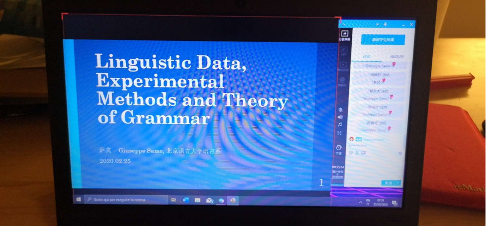 Author:Xiaoning Cao February 24th was the first day of online classes in the BLCU. Facing of the challenges and opportunities brought about by the epidemic to teaching, the Department of Linguistics earnestly implemented the university’s decisions and arrangements and strengthened organizational leadership and service guarantee. At the same time, it gave full play to the characteristics of disciplines and the advantages of major, doing a solid job of online education and teaching. In order to ensure high-quality teaching and full interaction with students, the Department of Linguistics has set up an online teaching seminar, in which teachers tried out different on-line teaching software before classes start. They communicated and provided feedback in the group, choosing their own teaching methods according to their own curriculum characteristics. With the continuous efforts of the teachers in our department, the first day’s teaching went beyond expectations, and the students’ feedback was good. Xiaochen Sun published learning tasks through “Xuexitong” , sharing video resources, electronic teaching materials, literature and so on. She also arranged quizzes and questions & answers on Wechat group after class, so that she could keep in touch with students and communicate with them about the course at any time. Rui Gong arranged preview task a week before formal class in the Wechat group, and gave on-live lectures via “Tencent Classroom”. Students could raise their hands, make phone calls and answer questions during the course. Just as sitting in the classroom, the speech transmission was clear and the teacher-student interaction was heated, which has achieved the expected teaching effect. According to the characteristics of the course, Wenying Wang adopted the way of video sharing, students reading literature, teacher answering questions in her teaching. Students actively discussed with her after reading literature and the course has attained good results. In addition, Dr. Giuseppe Samo, a foreign teacher in Europe, overcame jet lag to teach a live class at 1 a.m. local time and interacted with students in real time. Students all liked his teaching.  Dr. Giuseppe Samo of the Department of Linguistics is giving an online lecture. The Department of Linguistics mainly adopted the platform of “Xuexitong”, “Yuketang” and “Ketangpai” etc. to carry out the courses of leading-in, construction and online teaching, and monitored the operation of each online course in real time to ensure that “teachers were really teaching and students were really learning” . On the first day of the semester, the whole teaching system was smooth and orderly, and the feedback from teachers and students was good.