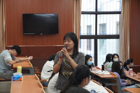 Teacher Yuyin He 3. student’s sharing. The third session of the conference is student sharing. This time there are military training sharing by 2020 undergraduate Jingjing Lv, 2020 undergraduate Liang Zuming’s social practice sharing, and 2019 undergraduate Siyu Liu’s sharing on College Students' Innovative Entrepreneurial Training Plan Program. As a military training model, Lv Jingjing shared her pains and pleasures in military training. Although military training had difficulties, it brought more gains. Zuming Liang went to poor areas during military training with the Hong Kong, Macao and Taiwan Affairs Office to observe the local education situation and shared what he saw, heard, and thought at the conference. Siyu Liu shared experience of participating in College Students' Innovative Entrepreneurial Training Plan Program and encouraged students to actively participate in scientific research activities.