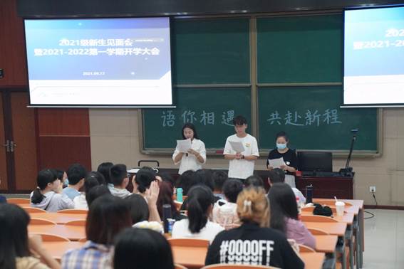 Author:Xiaotong Liu On the morning of September 17, 2021, the Department of Linguistics held a freshman meeting and the first semester opening meeting of the 2021-2022 semester with the theme “Encounter with you and go on a new journey together ” in the Main South Building 102. Participating in this conference are Professor Fuzhen Si, the Dean of the Department, Professor Zhongru Xiong, Professor Deping Lu, Deputy Directors, Xiaochen Sun, Wenying Wang, Yuyin He, Ye Feng, Xiaoning Cao, and Counselor Xue Meng, as well as the Department of Linguistics 21 Undergraduate and postgraduate freshmen, all students of the 19th and 20th grades of the Department of Linguistics as well as the new undergraduate and graduate students of the 21st grade and all students of the 19th and 20th grades of the Department of Linguistics.