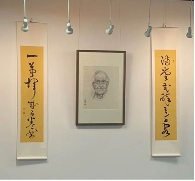 As one of the contents of this series of activities, the “Chomsky Analects” Linguistics Thematic Calligraphy and Painting Exhibition also perfectly combines the spread of linguistic knowledge with the beauty of calligraphy and painting art with its novel idea. The portrait painted by Professor Ming Qi, a famous painter of BLCU, for Professor Chomsky is a vivid work. Professor Li Liu, Professor Xiliang Cui, Professor Zheng Wen, Professor Qiang Qi, Professor Zhanyi Zhang, Mr. Shouxin Wo and retired staff representatives Senmiao Lu, Qiusheng Pengand Dazhi Chen and other calligraphy experts have also become an important part of this series of academic activities, which has played a role in improving the theoretical thinking and learning of students majoring in linguistics and enhancing their artistic appreciation ability. At the opening ceremony of the “Understanding Chomsky” series of activities, Professor Chomsky watched the video display of the calligraphy exhibition online.